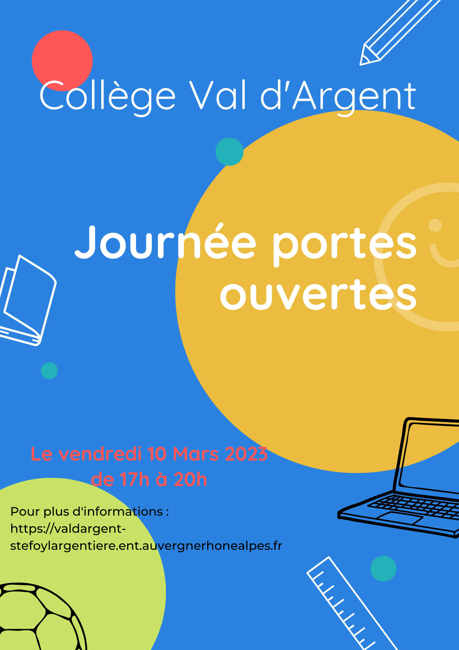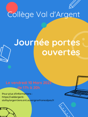Le vendredi 10 Mars de 17h à 20h, le collège propose aux parents de venir découvrir le collège Val d'argent. En cliquant sur le lien, vous retrouverez la plaquette de présentation du collège : Plaquette du collège
